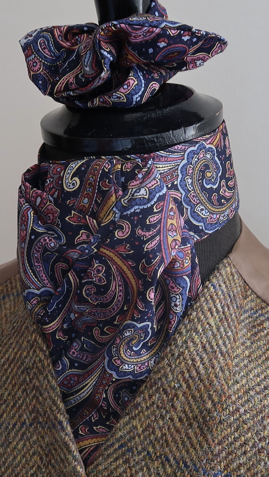 Ready Tied or Self tie Navy Pink and Orange Paisley design Cotton Stock Tie